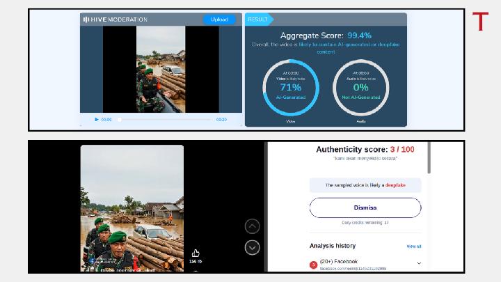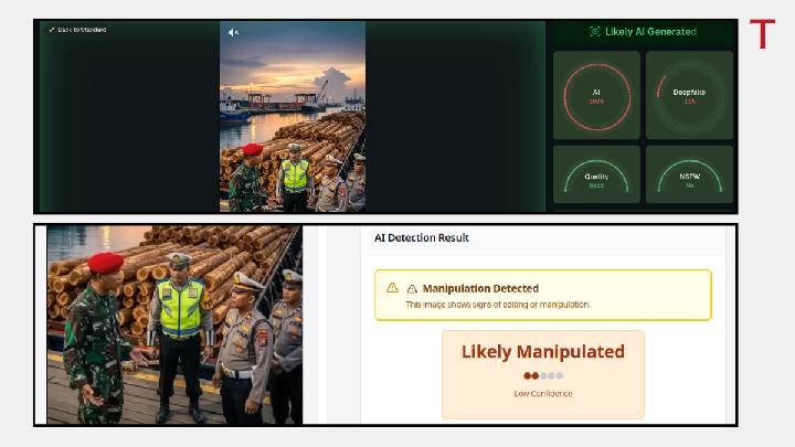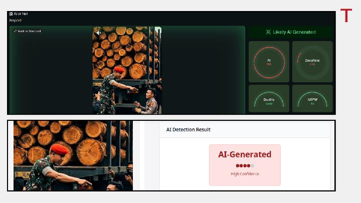 Manual analysis by the Deepfakes Analysis Unit shows that the faces of the three TNI soldiers in the video bear significant similarities, particularly in terms of cheekbones, nose lines, and lower jaws. “All of these findings indicate that the video is not authentic,” wrote the DAU analyst to Tempo on Friday, December 12, 2025.